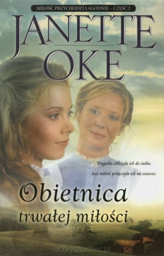 Milość przychodzi łagodnie to powieść będąca tematem filmu produkcji Hallmark Original Movie. Przedstawia dzieje Clarka i Marty Davisów, wchodzących w związek małżeński „z rozsądku", który z czasem przeradza się w relację pełną szacunku i prawdziwej miłości. W prezentowanej drugiej części książki Obietnica trwałej miłości bohaterowie opiekują się wciąż powiększającą się rodziną w małym domku na prerii. Wyciągając jednak rękę w kierunku ludzi ze społeczności kresowej, odkrywają, że miłość nie jest ograniczona jedynie do rozmiarów miejsca zamieszkania. Towarzysząc rodzinie Davisów zarówno w ich zwykłych,codziennych przeżyciach jak i doniosłych uroczystościach,szybko poczujesz, że zawładnęli twoim sercem. Spuścizna JANNETTE OKE to nie tylko jej powieści, nagrody Christy Award i Gold Medallion czy inne wyróżnienia, jakie otrzymała, ani nawet trendy wydawnicze inspirowane jej sukcesem pisarskim. To również tysiące listów, jakie otrzymuje od czytelników z całego świata, których serca i umysły zostały prawdziwie poruszone jej opowieściami.