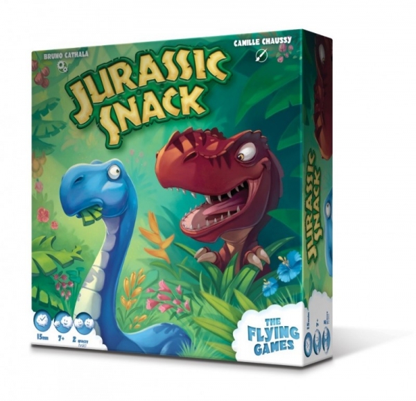 Młode Diplodoki uwielbiają smaczne liście rosnące na sąsiednich pastwiskach. Aby wygrać, Twoja drużyna Diplodoków musi zjeść więcej liści niż drużyna przeciwna... chyba że jeden z Was postanowi wezwać strasznego T-rexa, by pozbyć się Diplodoków przeciwnika! Jurassic Snack to gra autorstwa Bruno Cathali dla najmłodszych, przeznaczona dla 2 graczy od 7 roku życia. Celem każdego jest zebranie jak największej ilości żetonów trawy, nie narażając się na zjedzenie przez T-rexa.